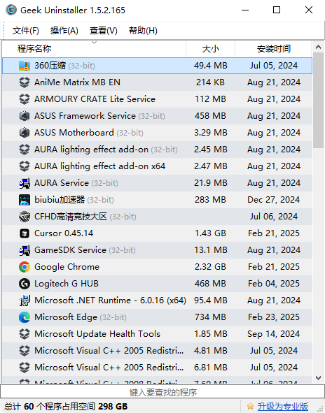 📌软件介绍 Geek Uninstallers是一款高效、快速、小巧、免费的软件卸载与清理工具,旨在帮助用户删除系统上安装的程序。不同于其他的卸载程序,Geek Uninstaller执行深入扫描进程,并清除软件卸载后留下的垃圾;它是一款绿色软件,无需安装。 🖼️ 预览图片